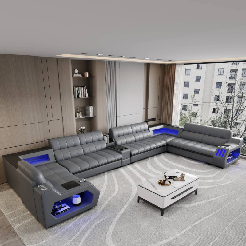 İtalyan Deri Kanepe 7 Kişilik Kombinasyon Modern Oturma Odası L Şeklinde